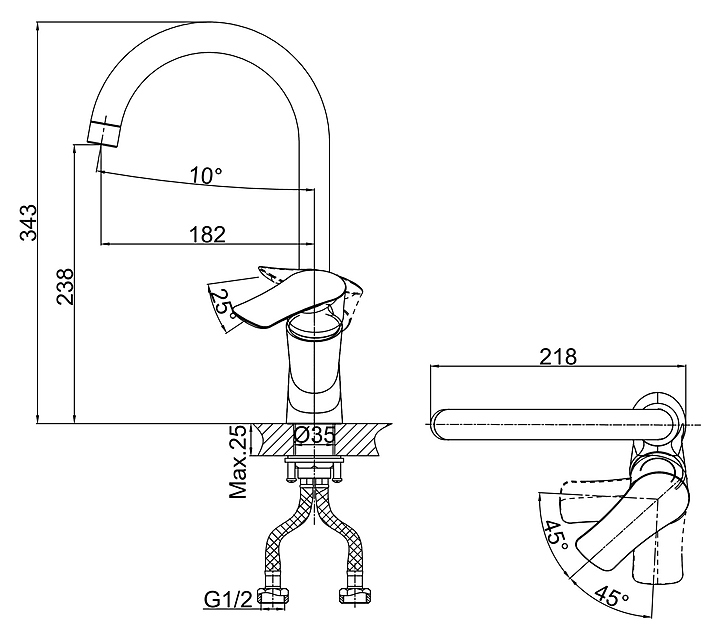 Смеситель D&K Rhein Reisling DA1272441 предназначен для использования в кухонных помещениях для подачи горячей и холодной воды. Модель оснащена высоким поворотным изливом, керамическим картриджем, обеспечивающим плавный ход рычага смесителя, контроль и точность при выборе напора и температуры воды, а также аэратором для создания мягкой ровной струи без разбрызгивания. Изделие выполнено из высококачественной латуни, отличающейся прочностью, долговечностью и устойчивостью к перепадам температур. В комплект поставки входят cмеситель, гибкая подводка и крепежные гайки. Особенности: