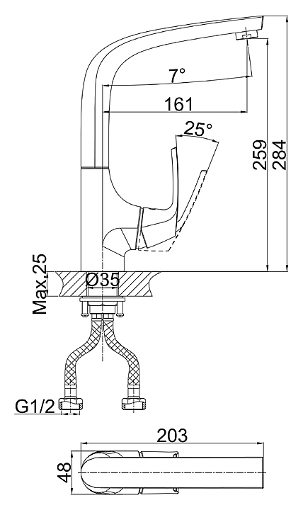 Смеситель D&K Rhein Feuerbach DA1282401 предназначен для использования в кухонных помещениях для подачи горячей и холодной воды. Модель оснащена высоким поворотным изливом, керамическим картриджем, обеспечивающим плавный ход рычага смесителя, контроль и точность при выборе напора и температуры воды, а также аэратором для создания мягкой ровной струи без разбрызгивания. Изделие выполнено из высококачественной латуни, отличающейся прочностью, долговечностью и устойчивостью к перепадам температур. В комплект поставки входят cмеситель, гибкая подводка и крепежные гайки. Особенности: