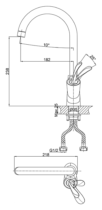 Смеситель D&K Venice Baciano DA1032441 предназначен для использования в кухонных помещениях для подачи горячей и холодной воды. Модель оснащена высоким поворотным изливом, керамическим картриджем, обеспечивающим плавный ход рычага смесителя, контроль и точность при выборе напора и температуры воды, а также аэратором для создания мягкой ровной струи без разбрызгивания. Изделие выполнено из высококачественной латуни, отличающейся прочностью, долговечностью и устойчивостью к перепадам температур. В комплект поставки входят cмеситель, гибкая подводка и С-образное крепление (шпилька). Особенности: