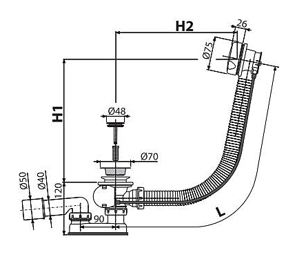 Слив-перелив AlcaPlast A51B предназначен для установки с ваннами. Пробка выполнена из стали, решетка слива - из латуни, гидрозатвор сифона - из полипропилена, устойчивого к термическим и химическим воздействиям. Комплектация: