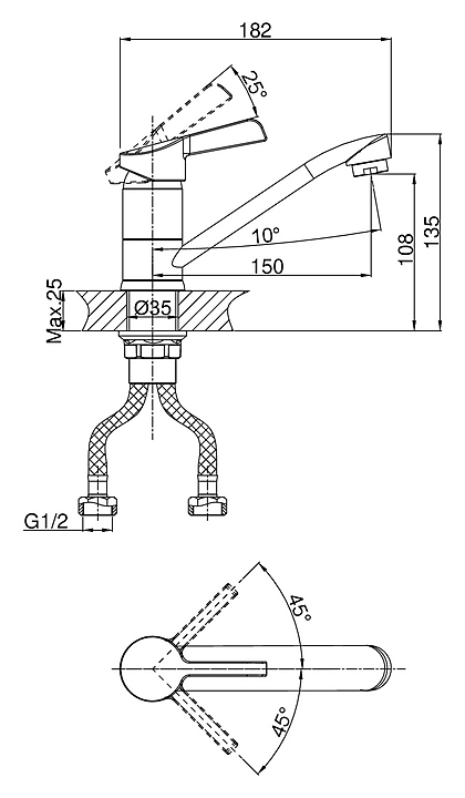 Смеситель D&K Rhein Schiller DA1462341 предназначен для использования в кухонных помещениях для подачи горячей и холодной воды. Модель оснащена поворотным изливом, керамическим картриджем, обеспечивающим плавный ход рычага смесителя, контроль и точность при выборе напора и температуры воды, а также аэратором для создания мягкой ровной струи без разбрызгивания. Изделие выполнено из высококачественной латуни, отличающейся прочностью, долговечностью и устойчивостью к перепадам температур. В комплект поставки входят cмеситель, гибкая подводка и крепежные гайки. Особенности: