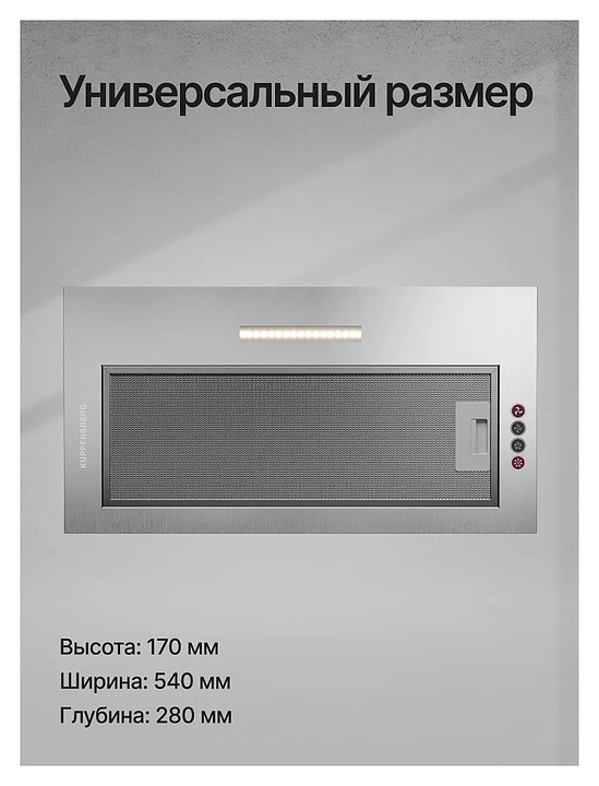 Вытяжка Kuppersberg INTOUCH 60 X серии Hi-Tech предназначена для очищения воздуха от дыма, запахов, испарений, продуктов сгорания и прочих примесей, образующихся в процессе готовки продуктов. Модель оснащена 3-слойным алюминиевым фильтром и LED-подсветкой. Угольный фильтр KF L в комплект поставки не входит и приобретается отдельно. Особенности: