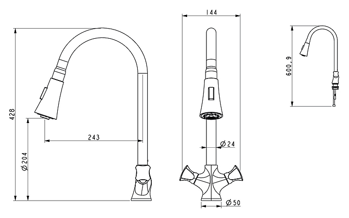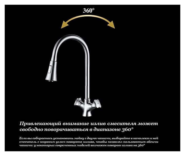 Смеситель D&K Hessen Grimm DA1382501 предназначен для использования в кухонных помещениях для подачи горячей и холодной воды. Модель оснащена высоким поворотным изливом с выдвижной двухрежимной лейкой, керамической кран-буксой для бесшумного смешивания холодной и горячей воды, а также аэратором для создания мягкой ровной струи без разбрызгивания. Изделие выполнено из высококачественной латуни, отличающейся прочностью, долговечностью и устойчивостью к перепадам температур. В комплект поставки входят cмеситель, гибкая подводка, шланг, лейка, подвес и крепежные гайки. Особенности: