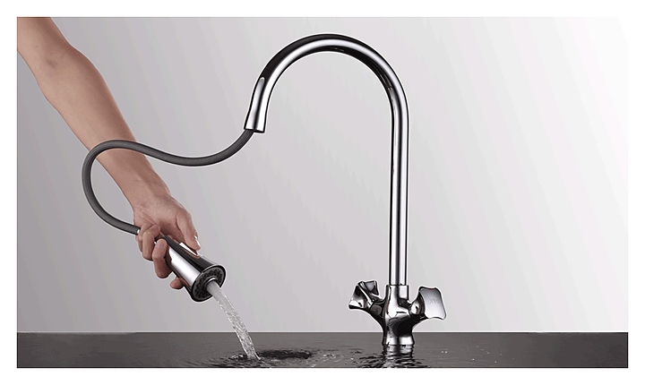 Смеситель для кухни D&K Hessen Grimm DA1382501 с выдвижной лейкой, хром