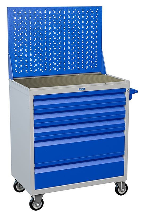 Тележка ПРОМЕТ WDS-5 предназначена для хранения инструментов и оснастки на производственных участках, станциях технического обслуживания, в мастерских и гаражах. Модель оснащена центральным ключевым замком, ручкой, 5 ящиками и колесами. Тележка изготовлена из высокопрочной стали, колеса - из резины. Экран в комплект поставки не входит и приобретается отдельно. Особенности: