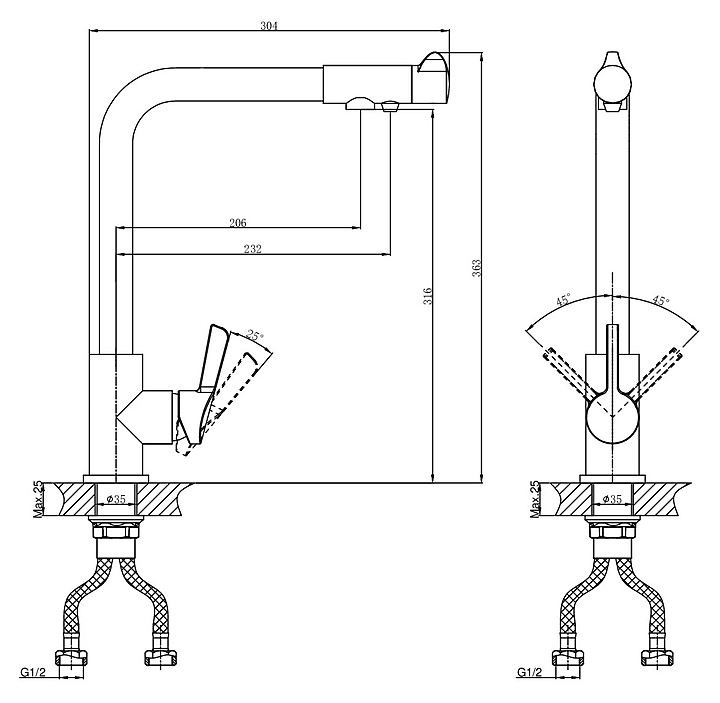 Смеситель D&K Rhein Schiller DA1461601 предназначен для использования в кухонных помещениях для подачи горячей и холодной воды. Модель оснащена совмещенным изливом для питьевой и проточной воды, керамическим картриджем, обеспечивающим плавный ход рычага смесителя, контроль и точность при выборе напора и температуры воды, а также аэратором для создания мягкой ровной струи без разбрызгивания. Изделие выполнено из высококачественной латуни, отличающейся прочностью, долговечностью и устойчивостью к перепадам температур. В комплект поставки входят cмеситель, гибкая подводка, комплект переходников и крепежная гайка. Особенности: