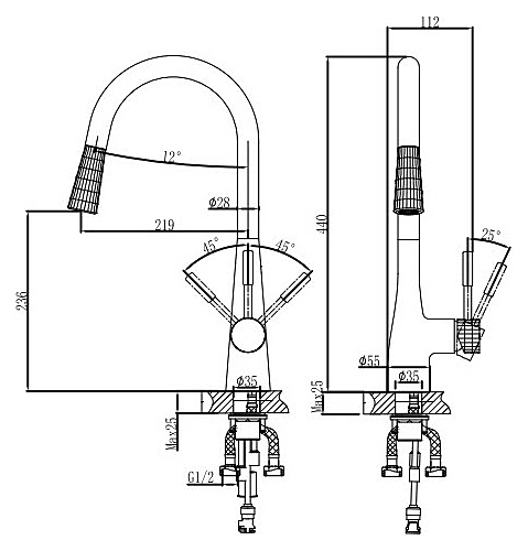 Смеситель D&K Rhein Schiller DA1462517A предназначен для использования в кухонных помещениях для подачи горячей и холодной воды. Модель оснащена поворотным изливом с двухрежимной выдвижной лейкой, керамическим картриджем, обеспечивающим плавный ход рычага смесителя, контроль и точность при выборе напора и температуры воды, а также аэратором для создания мягкой ровной струи без разбрызгивания. Изделие выполнено из высококачественной латуни, отличающейся прочностью, долговечностью и устойчивостью к перепадам температур. В комплект поставки входят cмеситель, шланг, лейка, гибкая подводка и крепежные гайки. Особенности: