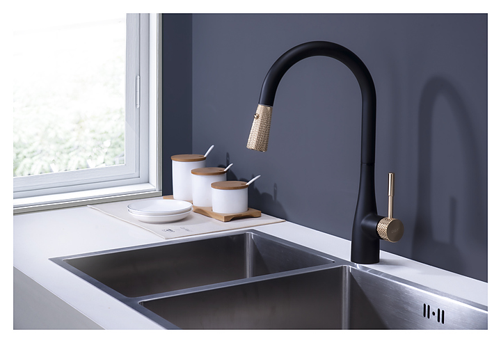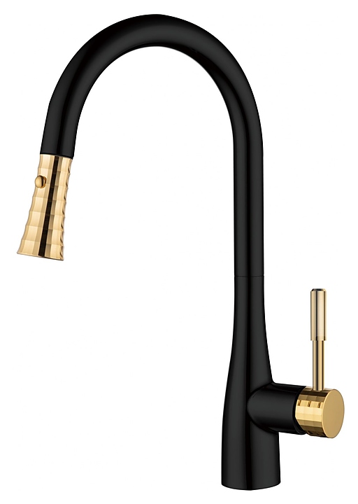 Смеситель для кухни D&K Rhein Schiller DA1462517A с выдвижной лейкой, золото, черный