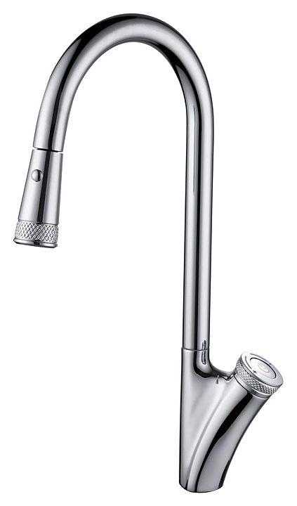 Смеситель D&K Bayern Alfeld DA1482501 предназначен для использования в кухонных помещениях для подачи горячей и холодной воды. Модель оснащена изливом с двухрежимной выдвижной лейкой, керамическим картриджем, обеспечивающим плавный ход рычага смесителя, контроль и точность при выборе напора и температуры воды, а также аэратором для создания мягкой ровной струи без разбрызгивания. Изделие выполнено из высококачественной латуни, отличающейся прочностью, долговечностью и устойчивостью к перепадам температур. В комплект поставки входят cмеситель, гибкая подводка и крепежные гайки. Особенности: