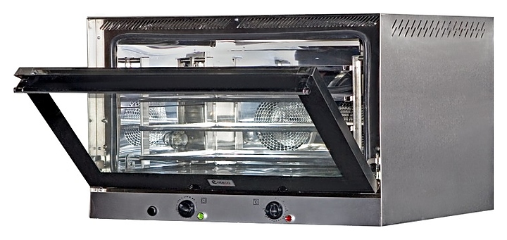 Конвекционная печь ENTECO MACTERГН 41 ПАР предназначена для выпечки и разогрева кондитерских и хлебобулочных изделий, термической обработки продуктов при консервации, а также приготовления различных блюд на предприятиях общественного питания и торговли. Модель оснащена откидной дверью с горизонтальной рукояткой, панелью управления с круговыми регуляторами и светодиодными индикаторами. Внешнее и внутреннее остекление двери выполнено из жаропрочного закаленного стекла, уплотнение – из высококачественной термостойкой резины. Гастроемкости не входят в комплект поставки и приобретаются отдельно. Особенности: