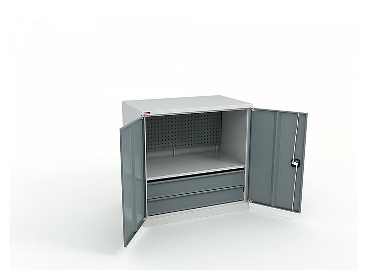 Инструментальный шкаф ДиКом ВЛ-051-04 ESD предназначен для хранения и работы с инструментом и различного вида электронными компонентами на предприятиях радиоэлектронной промышленности. Модель оснащена 2 выдвижными ящиками, оцинкованной полкой, перфорированным экраном и столешницей. Шкаф изготовлен из металла толщиной 0,8 мм. Особенности: