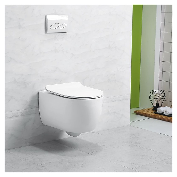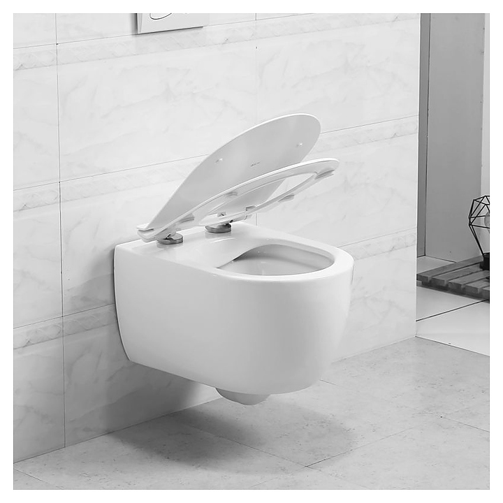 Подвесной унитаз Art&Max Bologna AM211CHR выполнен в современном стиле и легко впишется в любой интерьер. Модель оснащена системой "Антивсплеск", что препятствует образованию брызг при использовании. Благодаря подвесной конструкции унитаз обладает компактными размерами и не занимает много места в помещении, а свободное пространство под чашей делает уборку в ванной комнате гораздо легче. Безободковое исполнение позволяет предотвратить скопление бактерий и грязи на внутренней поверхности чаши и обеспечивает ее чистоту и гигиеничность использования. Изделие выполнено из керамики, которая обладает повышенной прочностью и устойчивостью к негативным внешним факторам, а так же способен долгое время сохранять идеальную белизну. В комплект поставки входят крепления для установки. Сиденье-крышка в комплект поставки не входит и приобретается отдельно. Особенности:
