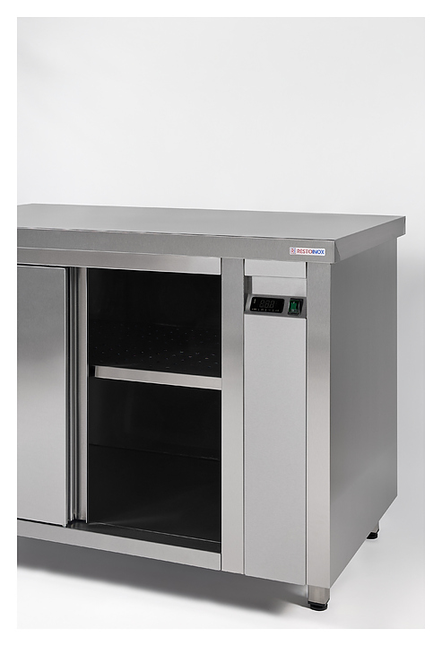 Тепловой стол Restoinox Т-СПСЗК-11/7 используется для подогрева и хранения в подогретом виде посуды, готовых блюд и напитков перед подачей, а также в качестве рабочей поверхности для приготовления на предприятиях общественного питания и торговли. Модель оснащена расположенным сбоку нагревательным отсеком с панелью управления, обогреваемой столешницей и сквозной камерой с дверьми-купе с двух сторон. Корпус, столешница и полка выполнены из высококачественной шлифованной нержавеющей стали AISI 430, опоры – из квадратного профиля стальной трубы AISI 430. Особенности: