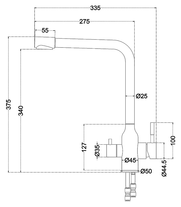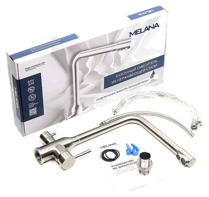Смеситель для кухни MELANA F610304 Stello с подключением к фильтру питьевой воды, сатин