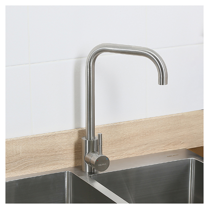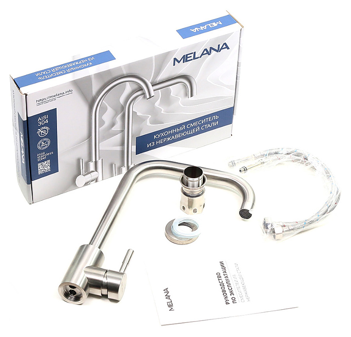Смеситель MELANA F610104 Tondo выполнен в современнм стиле и предназначен для подачи горячей и холодной воды в кухонных помещениях. Модель оснащена высоким поворотным изливом, керамическим картриджем, обеспечивающим плавный ход рычага смесителя, контроль и точность при выборе напора и температуры воды, а также аэратором для создания мягкой ровной струи без разбрызгивания. Однорычажный тип управления позволяет очень быстро и плавно регулировать подачу воды одной рукой. Изделие выполнено из нержавеющей стали, отличающейся повышенной устойчивостью к коррозии и долговечностью. Особенности: