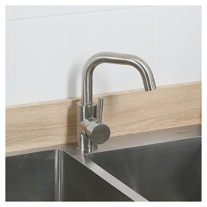 Смеситель MELANA F6102 выполнен в современнм стиле и предназначен для подачи горячей и холодной воды в кухонных помещениях. Модель оснащена поворотным изливом, керамическим картриджем, обеспечивающим плавный ход рычага смесителя, контроль и точность при выборе напора и температуры воды, а также аэратором для создания мягкой ровной струи без разбрызгивания. Однорычажный тип управления позволяет очень быстро и плавно регулировать подачу воды одной рукой. Изделие выполнено из нержавеющей стали, отличающейся повышенной устойчивостью к коррозии и долговечностью. Особенности: