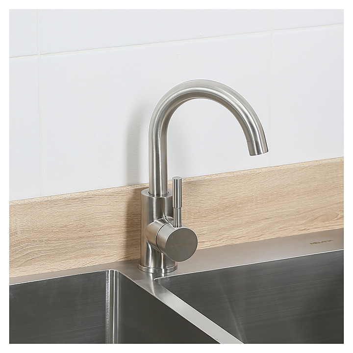 Смеситель MELANA F6108 выполнен в современнм стиле и предназначен для подачи горячей и холодной воды в кухонных помещениях. Модель оснащена поворотным изливом, керамическим картриджем, обеспечивающим плавный ход рычага смесителя, контроль и точность при выборе напора и температуры воды, а также аэратором для создания мягкой ровной струи без разбрызгивания. Однорычажный тип управления позволяет очень быстро и плавно регулировать подачу воды одной рукой. Изделие выполнено из нержавеющей стали, отличающейся повышенной устойчивостью к коррозии и долговечностью. Особенности: