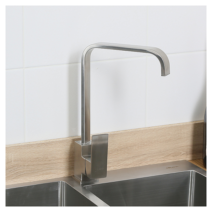 Смеситель MELANA F8113 выполнен в современнм стиле и предназначен для подачи горячей и холодной воды в кухонных помещениях. Модель оснащена высоким поворотным изливом, керамическим картриджем, обеспечивающим плавный ход рычага смесителя, контроль и точность при выборе напора и температуры воды, а также аэратором для создания мягкой ровной струи без разбрызгивания. Однорычажный тип управления позволяет очень быстро и плавно регулировать подачу воды одной рукой. Изделие выполнено из нержавеющей стали, отличающейся повышенной устойчивостью к коррозии и долговечностью. Особенности: