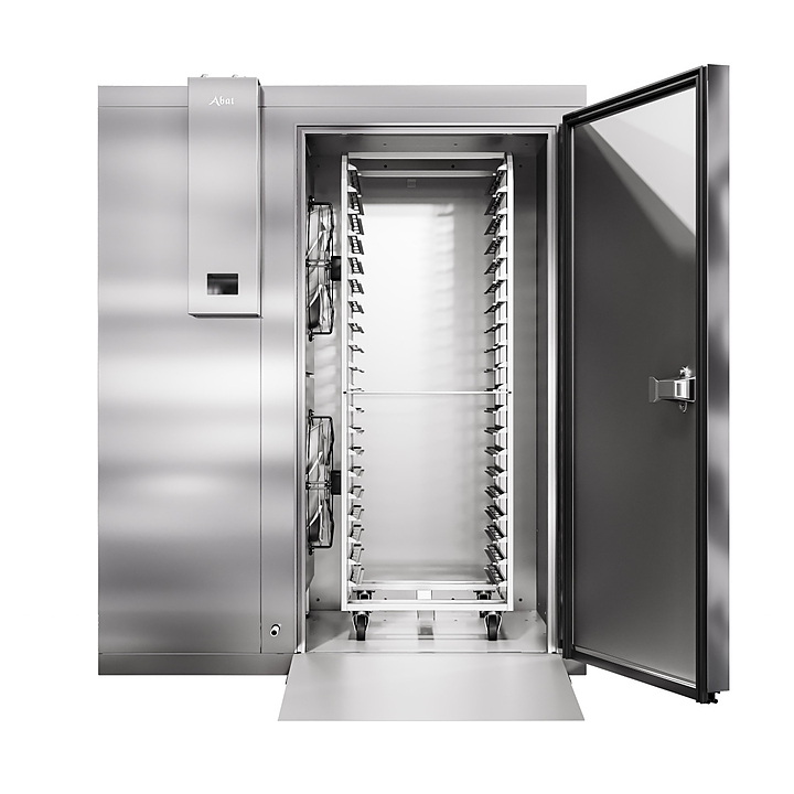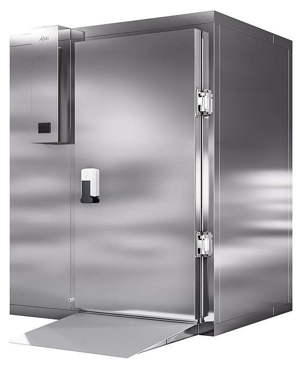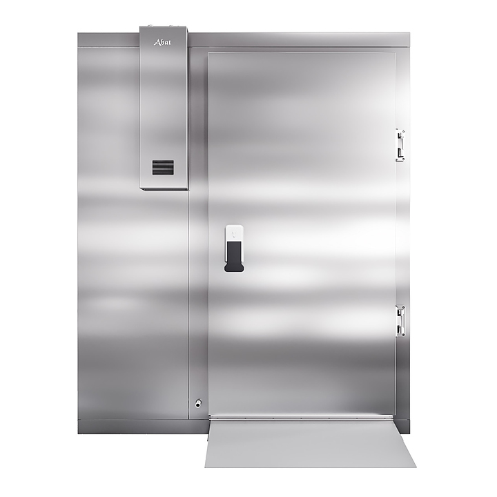 Камера шоковой заморозки Abat ШОКК-201 предназначена для быстрого охлаждения и замораживания различных пищевых продуктов и полуфабрикатов для дальнейшего их хранения на низкотемпературных складах предприятий общественного питания. Модель оснащена воздухоохладителем с 2 вентиляторами, навесной дверью с низкотемпературным уплотнителем, подогревом и двусторонним замком. Пандус и пол камеры выполнены из рифленого нержавеющего листа, стенки и потолок - сендвич-панели из высококачественной нержавеющей стали толщиной 80 мм. Особенности: