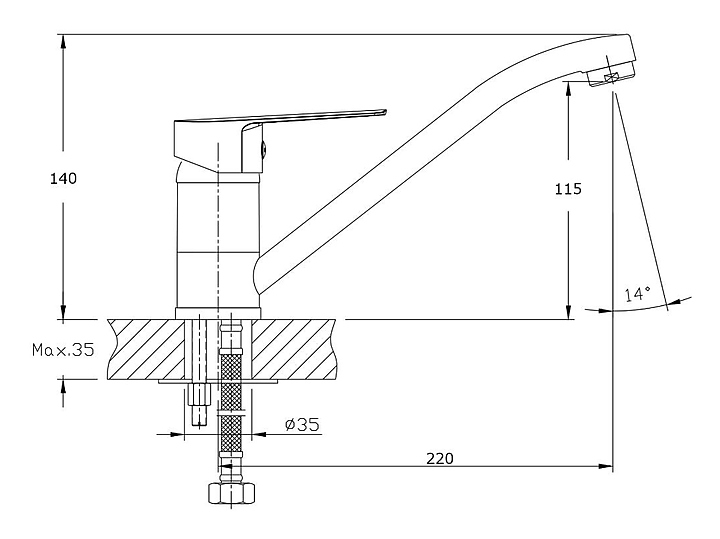 Смеситель для раковины RUSH Disco DI6935-25 предназначен для подачи горячей и холодной воды в кухонных помещениях. Модель оснащена керамическим картриджем, обеспечивающим плавный ход рычага смесителя, контроль и точность при выборе напора и температуры воды. Аэратор экономит расход воды, уменьшает шум и снижает количество брызг. Изделие выполнено из латуни, отличающейся прочностью, долговечностью и устойчивостью к перепадам температур, аэратор - из пластика с нержавеющим корпусом. В комплект поставки входят аэратор, фум-лента, универсальная присоединительная группа и подводка. Дополнительные характеристики: