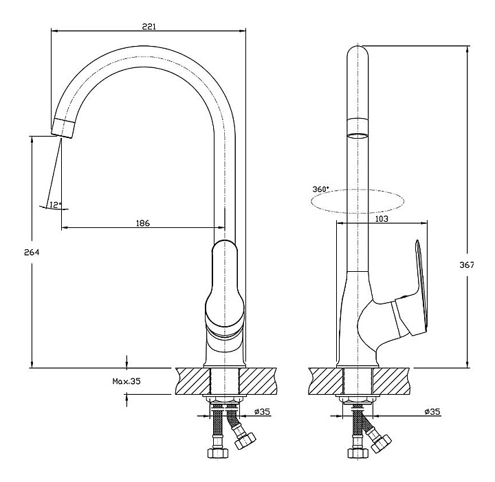 Смеситель для раковины RUSH Crete CR3535-22 предназначен для подачи горячей и холодной воды в кухонных помещениях. Модель оснащена керамическим картриджем, обеспечивающим плавный ход рычага смесителя, контроль и точность при выборе напора и температуры воды. Аэратор экономит расход воды, уменьшает шум и снижает количество брызг. Изделие выполнено из латуни, отличающейся прочностью, долговечностью и устойчивостью к перепадам температур, аэратор - из пластика с нержавеющим корпусом. В комплект поставки входят аэратор, фум-лента, присоединительная группа и подводка. Дополнительные характеристики: