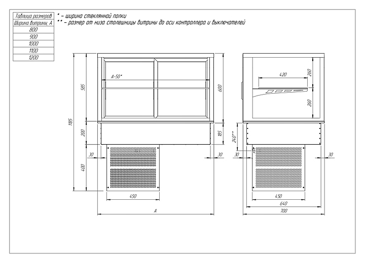 Встраиваемая витрина Finist STEVE S-2/9 предназначена для демонстрации и раздачи готовых охлажденных блюд, десертов, кондитерских изделий и напитков на предприятиях общественного питания и торговли. Модель оснащена камерой с дверцами-купе и полкой, кабелем питания с вилкой и кнопочной панелью управления с цифровым дисплеем. Корпус агрегата и каркас купола выполнены из высококачественной нержавеющей стали с полимерно-порошковым прокрытием, купол – из однокамерного стеклопакета. Особенности: