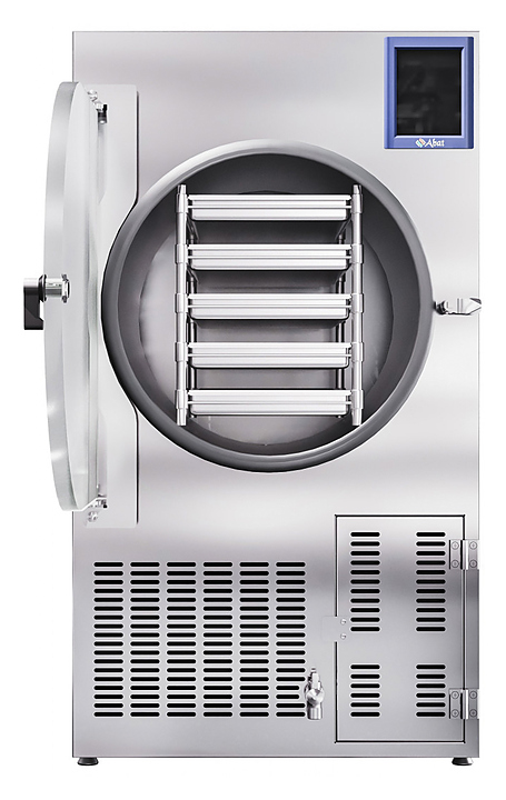 Лиофильная сушильная камера Abat ЛФ-06П предназначена для высушивания продуктов в морозильной камере без потери вкуса и питательной ценности при помощи вакуумного насоса для дальнейшего хранения в герметичной упаковке на предприятиях общественного питания и торговли. Модель оснащена сенсорной панелью управления, прозрачной дверцей с поворотной ручкой, цилиндрической вакуумной камерой со стеллажом для лотков и вакуумным насосом. Облицовка корпуса и лотки выполнены из аустенитной нержавеющей стали AISI 304, кассета - из алюминия. В комплект поставки входят 5 лотков для размещения продукта. Особенности: