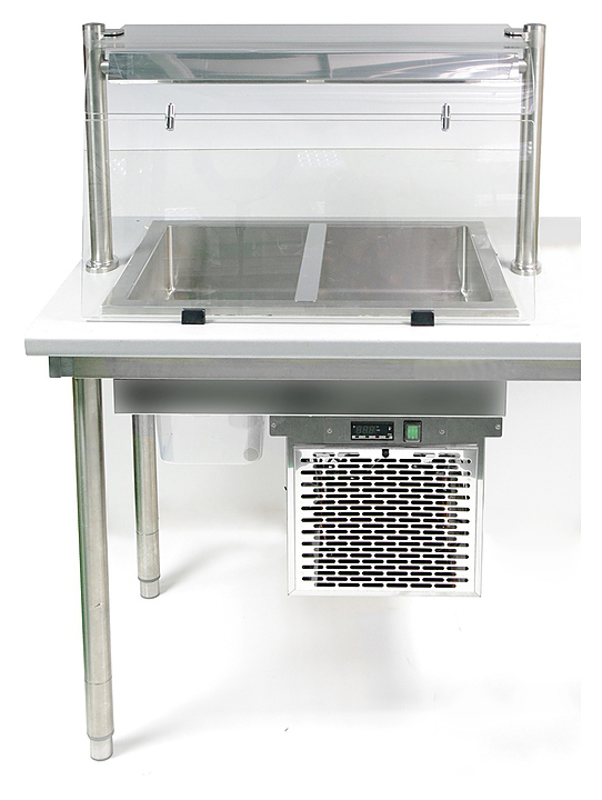 Полка-надставка Kocateq DM94588NE предназначена для установки на мармит DM 94943.2, салат-бар DM 94930.2 и другие встраиваемые элементы линии раздач на предприятиях общественного питания и торговли. Модель оснащена наклонным стеклом со стороны покупателя для защиты продуктов питания от загрязнения. Стойки и верхняя полка выполнены из нержавеющей стали. Характеристики: