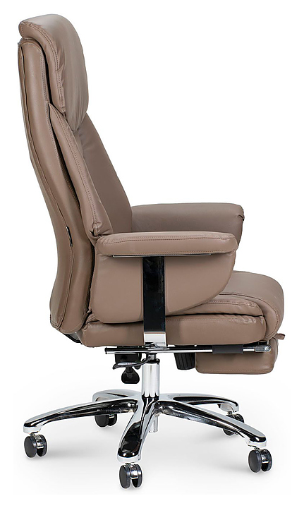 Кресло NORDEN Парламент предназначено для меблировки офисов и современных домашних кабинетов. Модель оснащена высокой спинкой с удобным подголовником, выдвижной опорой для ног и роликовыми колесами. Обивка спинки и сиденья выполнена из высококачественной экокожи, наполнение сиденья - из пенополиуретана, каркас - из металла, крестовина и газ-патрон - из хромированной стали, подлокотники - из экокожи с хромированными деталями. Особенности: