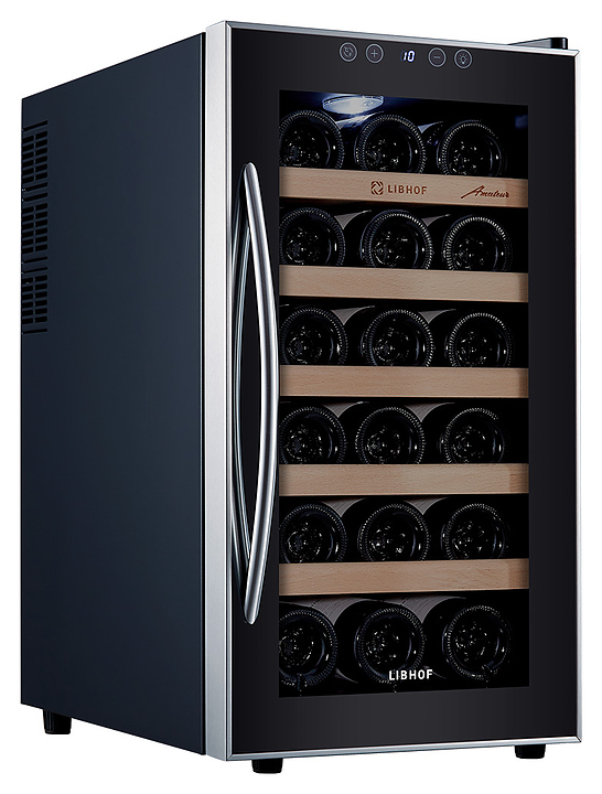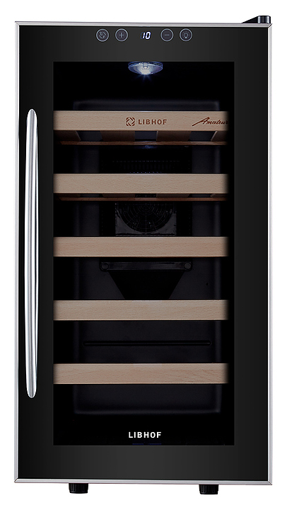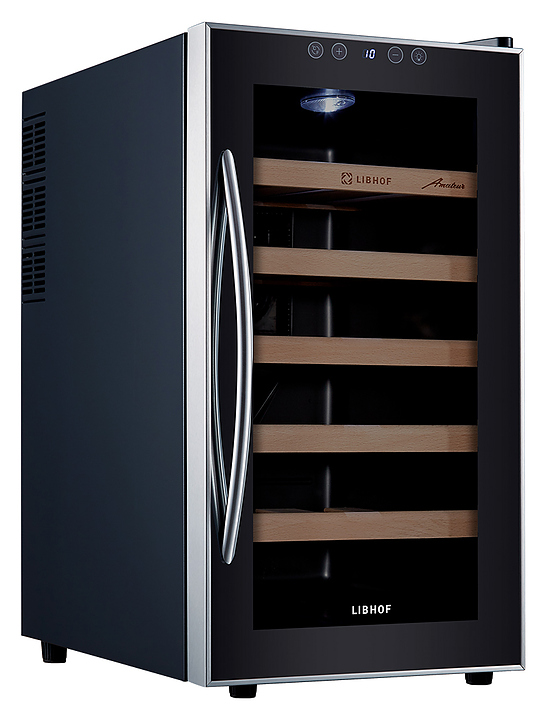 Винный шкаф Libhof Amateur AM-18 предназначен для хранения при оптимальных условиях бутилированного вина различных сортов в барах, ресторанах, специализированных магазинах, подсобных складских помещениях, а также в домашних условиях. Модель оснащена 5 съемными полками, распашной дверью с внешними петлями, длинной рукояткой и зеркальным стеклом с защитным напылением от ультрафиолетовых лучей. Корпус выполнен из металла, полки - из массива буковой древесины. Особенности: