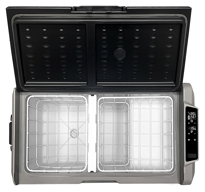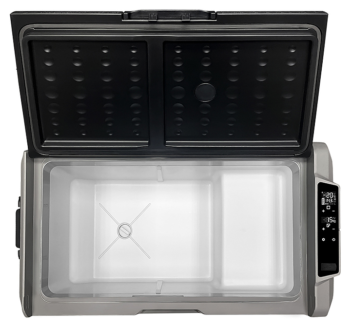 Переносной автохолодильник MEYVEL AF-SD36 предназначен для охлаждения, глубокой заморозки, хранения и транспортировки продуктов питания и напитков в легковых и грузовых автомобилях, автодомах, специальной технике, лодках, катерах, яхтах, других видах транспорта и в быту. Модель оснащена съемной внутренней перегородкой для разделения пространства на 2 камеры, откидной крышкой и сенсорной панелью управления с ЖК-дисплеем. Корпус выполнен из прочного пластика, теплоизоляция – пенополиуретан высокой плотности. В комплект поставки входит корзина для продуктов. Особенности:
