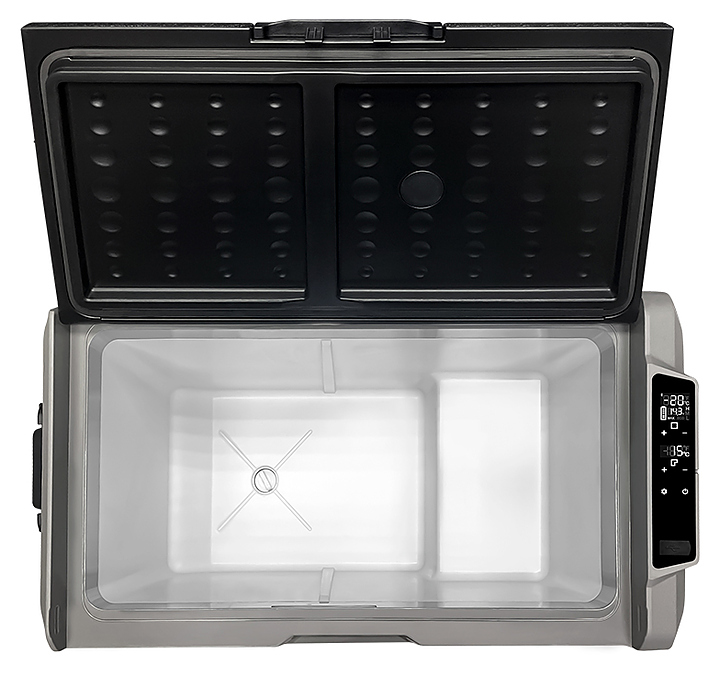 Переносной автохолодильник MEYVEL AF-SD50 предназначен для охлаждения, глубокой заморозки, хранения и транспортировки продуктов питания и напитков в легковых и грузовых автомобилях, автодомах, специальной технике, лодках, катерах, яхтах, других видах транспорта и в быту. Модель оснащена съемной внутренней перегородкой для разделения пространства на 2 камеры, откидной крышкой и сенсорной панелью управления с ЖК-дисплеем. Корпус выполнен из прочного пластика, теплоизоляция – пенополиуретан высокой плотности. В комплект поставки входит корзина для продуктов. Особенности: