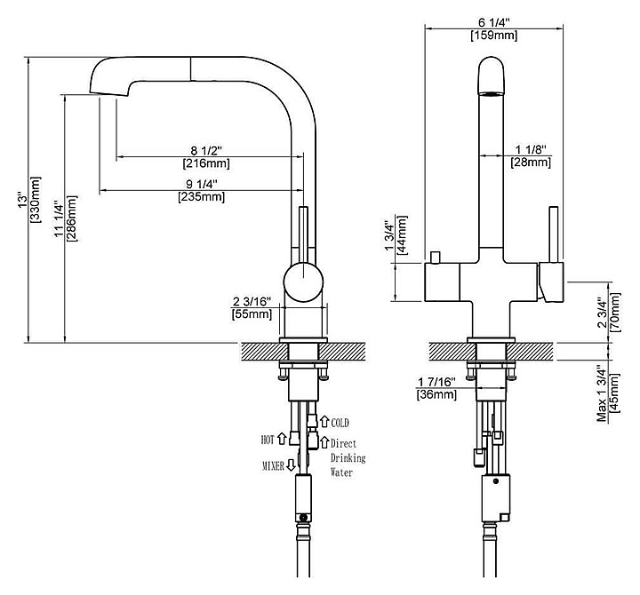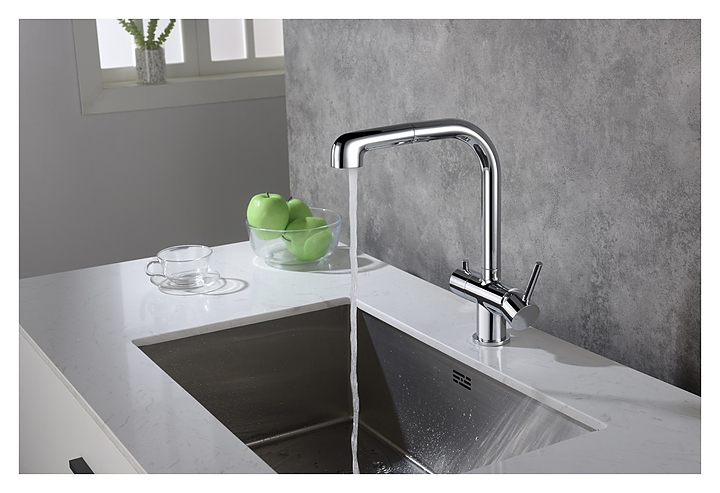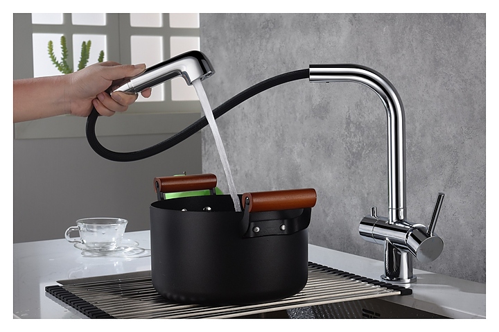 Смеситель для кухни TIMO Saona 2346/00FL с подключением фильтра и выдвижной лейкой, хром