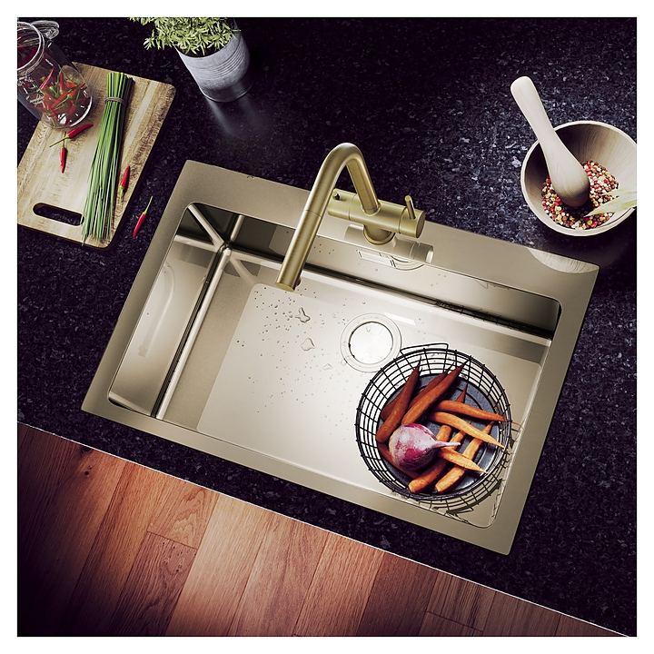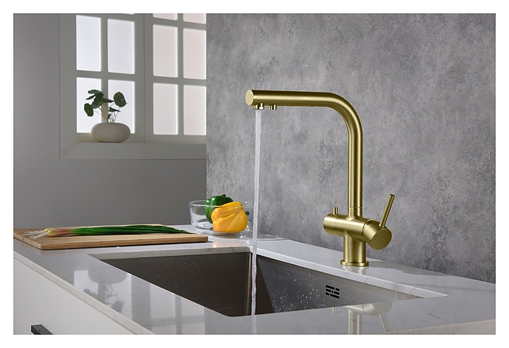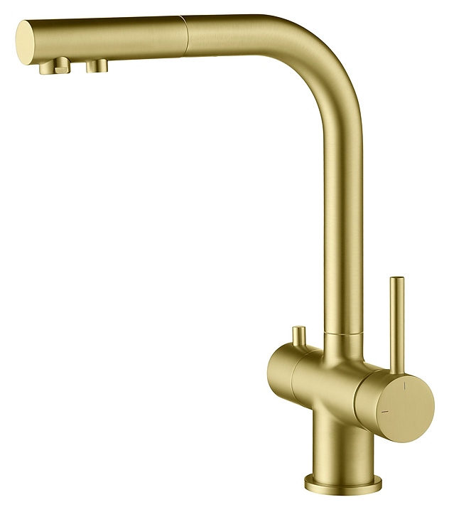 Смеситель для кухни TIMO Saona 2356/17FL с подключением фильтра и выдвижной лейкой, золото матовое