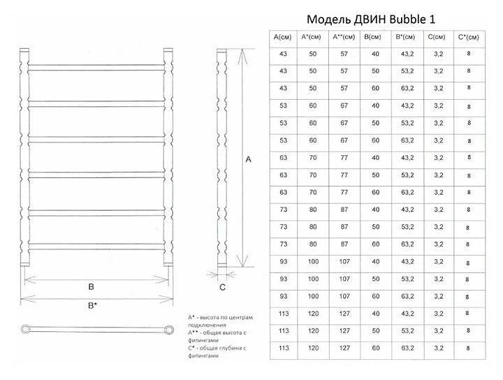Полотенцесушитель электрический Двин 4627170784392 Bubble 1 electro 60/50 1"-½", К эл ТЭН справа, белый