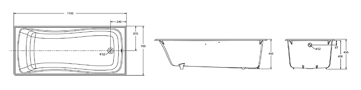 Ванна Jacob Delafon BLISS E6D902-0 170х75 см без ручек, чугун
