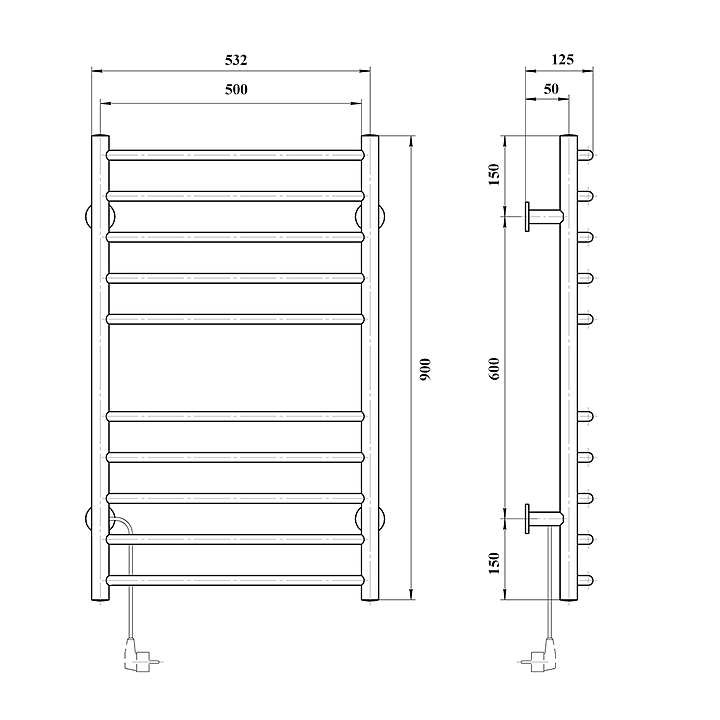 Полотенцесушитель электрический Domoterm Аврора 109-10 50x90 см EK L, с выключателем и термодатчиком, левый