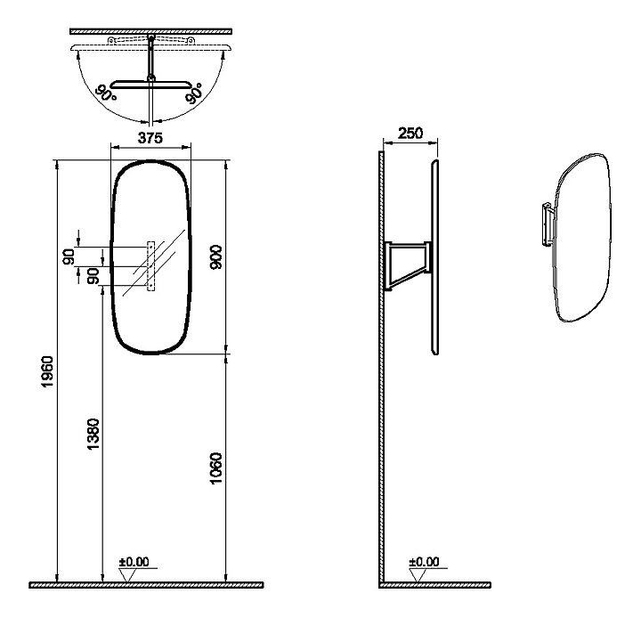 Зеркало Vitra Plural 38 64059 37,5х90 см