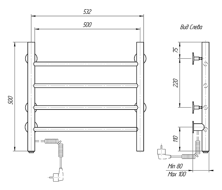 Полотенцесушитель электрический Domoterm Классик 109-4 50х50 см ЧРН EK L, левый