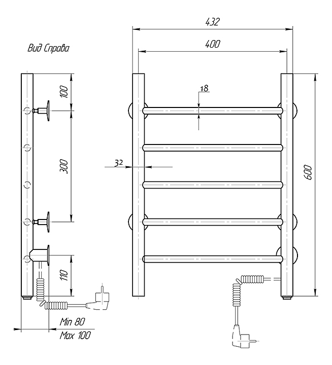Полотенцесушитель электрический Domoterm Классик 109-5 40х60 см ЧРН EK R, правый