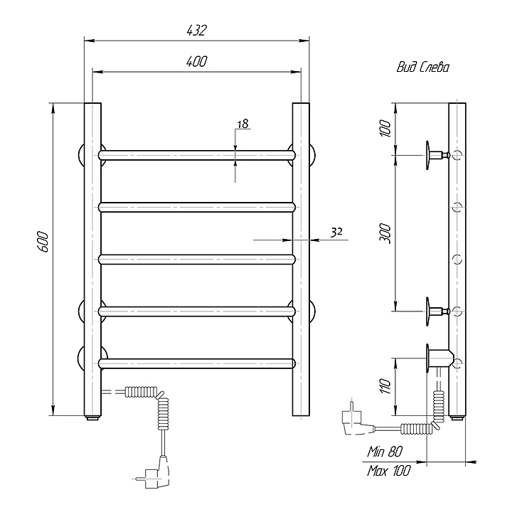 Полотенцесушитель электрический Domoterm Классик 109-5 40х60 см ЧРН EK L, левый