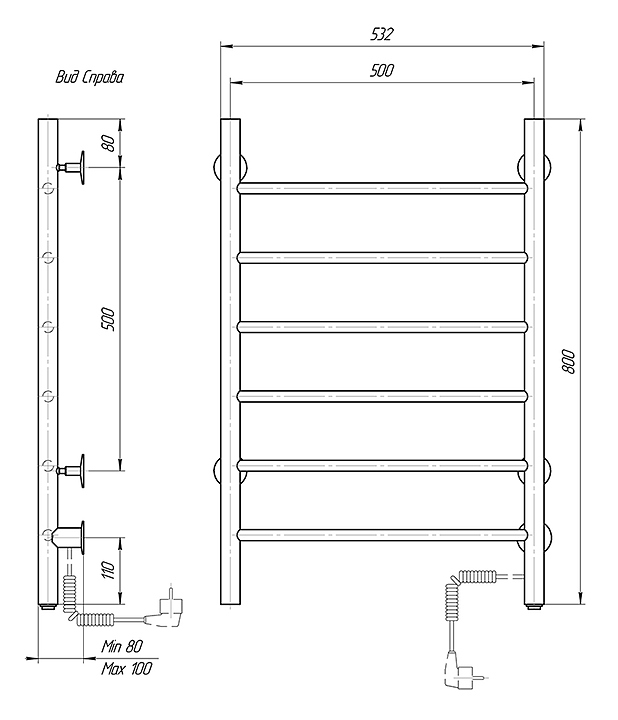 Полотенцесушитель электрический Domoterm Классик 109-6 50x80 см ЧРН EK R, правый