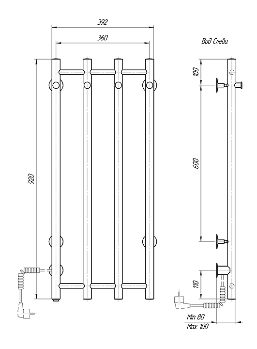 Полотенцесушитель электрический Domoterm Танго 109-V4 36x92 см ЧРН EK L, левый