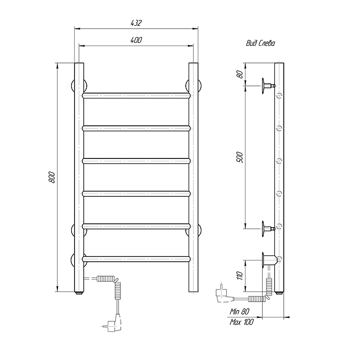 Полотенцесушитель электрический Domoterm Аврора 109-6 40x80 см БЕЛ EK L, с выключателем и термодатчиком, левый