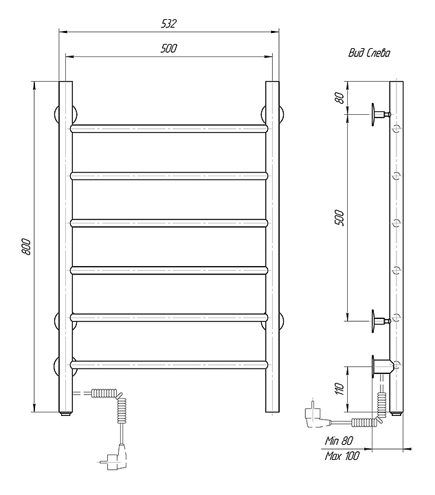Полотенцесушитель электрический Domoterm Классик 109-6 50x80 см БЕЛ EK L, левый