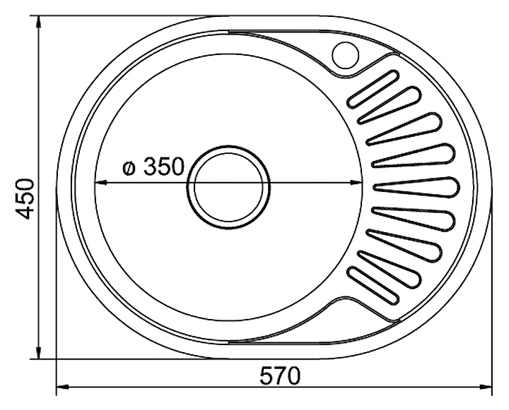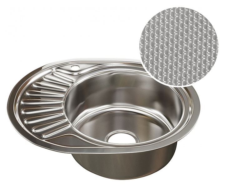 Мойка кухонная Mixline ML 45х57 см слив 90 мм, толщина стали 8 мм, с сифоном, с декором, правая