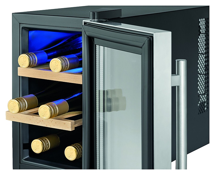 Винный шкаф Profi Cook PC-WK 1231 предназначен для охлаждения и длительного хранения бутилированного и разливного вина в частных домах, квартирах, отелях и офисах. Модель оснащена панелью управления cо светодиодным дисплеем с синей подсветкой, 2 съемными полками и регулируемыми ножками. Дверь выполнена из трехслойного стекла с защитой от УФ излучения, полки - из дерева. Особенности: