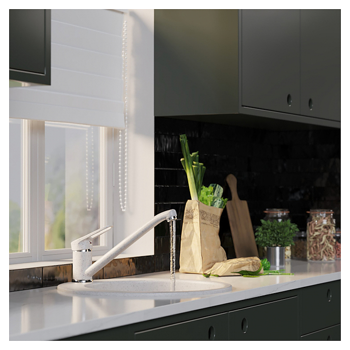 Смеситель Mixline ML-GS03 (328) предназначен для использования в кухонных помещениях для подачи горячей и холодной воды. Модель оснащена керамическим картриджем, обеспечивающим плавный ход рычага смесителя, контроль и точность при выборе напора и температуры воды, а также аэратором для создания мягкой ровной струи без разбрызгивания. Изделие выполнено из высококачественной латуни, отличающейся прочностью, долговечностью и устойчивостью к перепадам температур. В комплект поставки входят гибкая подводка и комплект крепежных элементов. Особенности: