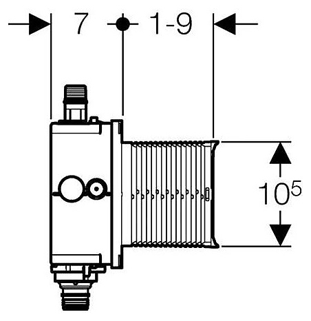 Блок управления смывом Geberit 116.004.00.1 предназначен для скрытого монтажа писсуаров в капитальной стене. Ниппель для смывного патрубка из латуни. Особенности: