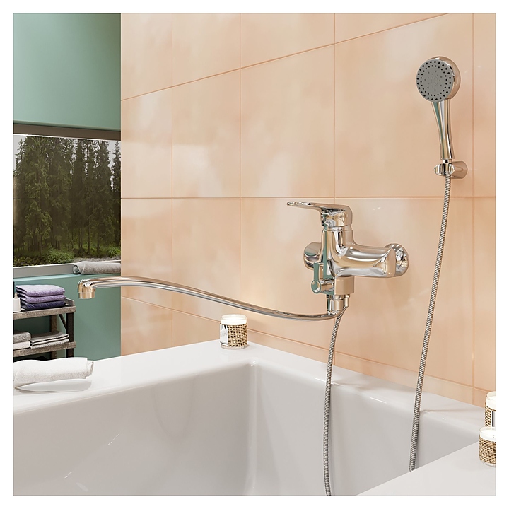 Смеситель Mixline ML13-02 предназначен для использования в ванных помещениях для подачи горячей и холодной воды. Модель оснащена длинным поворотным изливом, душевым гарнитуром, включающим в себя ручную лейку, душевой шланг и настенный держатель, керамическим картриджем, обеспечивающим плавный ход рычага смесителя, контроль и точность при выборе напора и температуры воды, а также аэратором для создания мягкой ровной струи без разбрызгивания. Изделие выполнено из латуни, отличающейся прочностью, долговечностью и устойчивостью к перепадам температур. В комплект поставки входят душевой шланг, ручная лейка, дивертор и держатель для ручной лейки. Особенности: